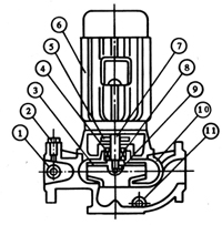 ISG型结构说明: 1.泵与电机同端盖,轴向尺寸缩短,结构简单。 2.泵体上设有取压孔和放水孔。 3.泵体上设有排气阀,工作前能拐车放泵内空气。 4.泵体底部设有安装底板和螺栓孔,保证整体机组安装稳固。 |