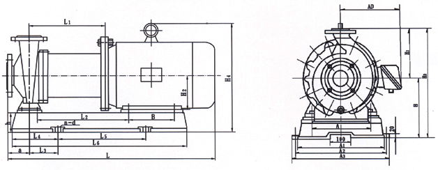 | 型号 | A | AD | B | L | L1 | H1 | H2 | a | A1 | A2 | A3 | H | H3 | H4 | L2 | L3 | L4 | L5 | L6 | h | n-d |