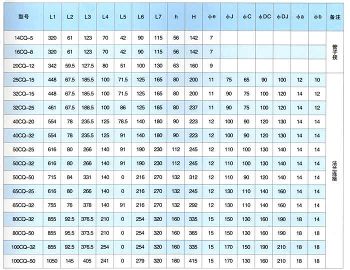 注:表中16CQ-8---100CQ-50都可配防爆电机 |