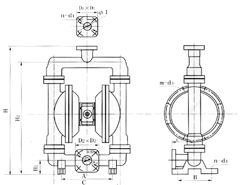 QBY系列气动隔膜泵是一种新型输送机械,是目前国内新颖的一种泵类。采用空气压缩机压缩空气为动力源,对于各种腐蚀性液体,带颗粒的液体,高粘度、易挥发、易燃、剧毒的液体,均能予以抽光吸尽。其性能参数与联邦德国的 WLLDENPVMPS、美国的MARIOWPUMPS相近.本厂目前已形成系列化生产,共有八种规格直径:10mm(3/8")、¢15mm(1/2")、¢25mm(1")、¢40mm( 1 1/2")、¢50mm(2")、¢65mm( 2 1/2")、¢80mm(3")、¢100mm(4")。三种材质、铝合金、铸铁、不锈钢。隔膜泵根据不同液体介质分别采用丁晴橡胶、氯丁橡胶、氟橡胶、聚四氟乙烯。以满足不同用户的需要。该泵自投产以来,已被国内一千多家石油、化工、电子、陶瓷、纺织、油漆、制药机械系统单位采用,安置在种特殊场合,用来抽送各种常规泵不能抽吸的介质,且替代齿轮泵的理想产品,均取的了满意的效果。
