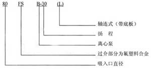 4、性能范围与型号说明:FSB型和FSB.L型系列耐腐蚀泵,全系列共19个规格。流量范围1.5.loom3/时,扬程范围10.50m。