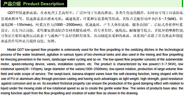 QJB型潜水搅拌机作为水处理工艺中的关键设备之一,在水处理工艺流程中,可实现生化过程中固液二相流和固液气三相流的均质,流动的工艺要求。它由潜水机叶轮和安装系统等组成。潜水搅拌机为直连式结构。他于传统的大功率电机通过减速机降速相比,具有结构紧凑,能耗低,便于维护和保养等有点。