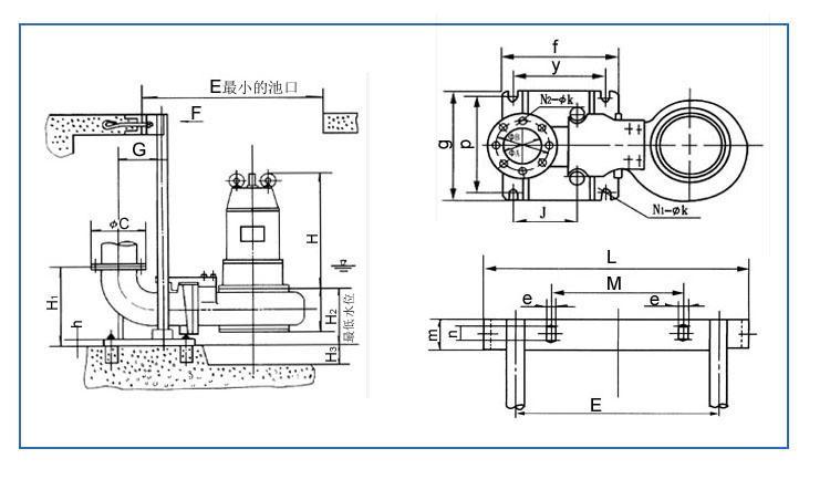 2、无内自流循环冷却系统的泵,电机部分露出液面不超过½。