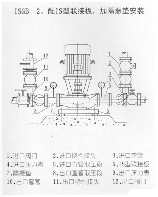 ISGB型便拆立式管道离心泵是在ISG型泵的基础上开发成功的一种结构新颖,技术先进的产品。