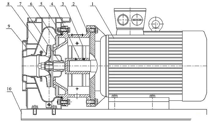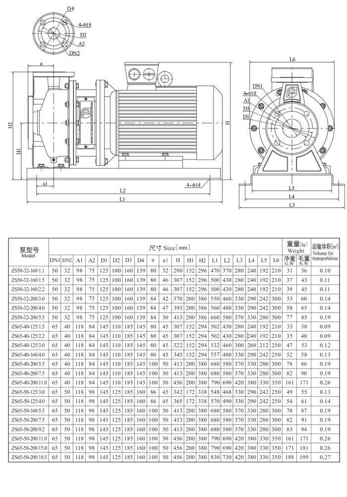 ZS型不锈钢卧式单级离心泵为泵轴直联型联结,由泵、泵轴和标准电机组成:
