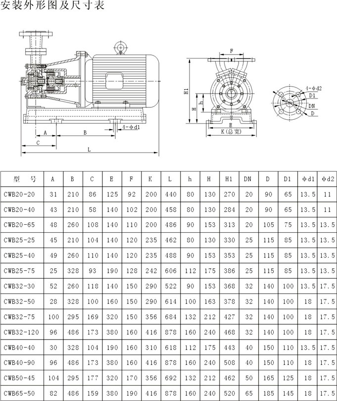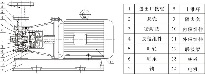 (一)磁力泵应水平安装,不宜竖立,对于特殊要求垂直安装的场合,电机务必朝上。