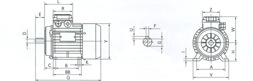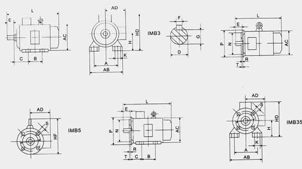 Y2系列B5轴B3轴三相异步电动机外形尺寸图