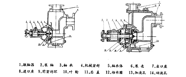 3.在寒冷季节,应将泵体内的储液和轴承体冷却室内的水放空,以防冻裂机件。