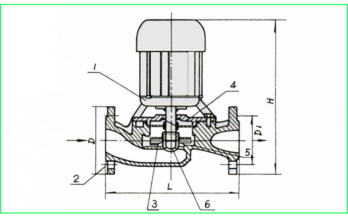 本公司生产的SGR型系列立式热水管道泵(以下简称电泵),管道泵执行标准JB/T6878-2006,本系列产品是为管道增压输送,解决管道压力过低而研制的新颖电泵。由于采用先进机械密封,电机主轴直接安装叶轮,故有效率高、耗电省、结构紧凑、体积小,重量轻,装修方便等特点。并可根据扬程与流量的需要并串联使用。本电泵由电动机,机械密封,水泵三部分组成,电机为单相或三相异步电动机;水泵与电动机之间采用机械密封,电泵转子轴采用优质碳钢材料,并经过耐腐处理确保轴有更可靠的机械强度,可有效地提高轴的耐磨性和耐腐蚀性,同时也有便于叶轮的维修和拆卸,泵各固定止口密封处采用"O"形橡胶密封圈作静密封。