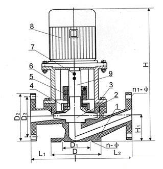 1、泵体 2、叶轮 3、泵盖 4、静环压盖 5、机械密封 6、托架 7、柱头螺钉 8、电机 9、叶轮轴